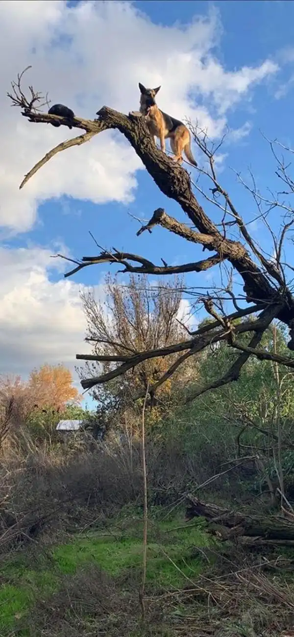 Этот пес так сильно хотел догнать кота, что каким-то чудом залез вместе с ним на дерево. Но в итоге Мухтар застрял. Пес никак не мог пошевелиться, но коту тоже не повезло, ведь он перегородил ему путь. Эту странную картину заметили местные и вызвали пожарных. Они, кстати, и запечатлели историю спасения на фото и опубликовали снимки в Facebook.
