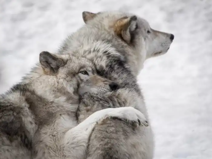 Для того чтобы утихомирить зазнавшегося волка, альфа прикусывает нарушителю порядка морду. Кусать за волчьи лица может только вожак стаи, так он подчёркивает свой статус и положение.