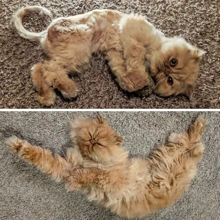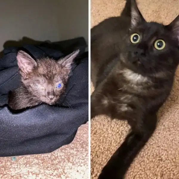 «Нашел эту юную леди на парковке, всю в блохах и с травмированной лапой, она сильно плакала. На втором фото — она же спустя 3 месяца и 2 операции»
