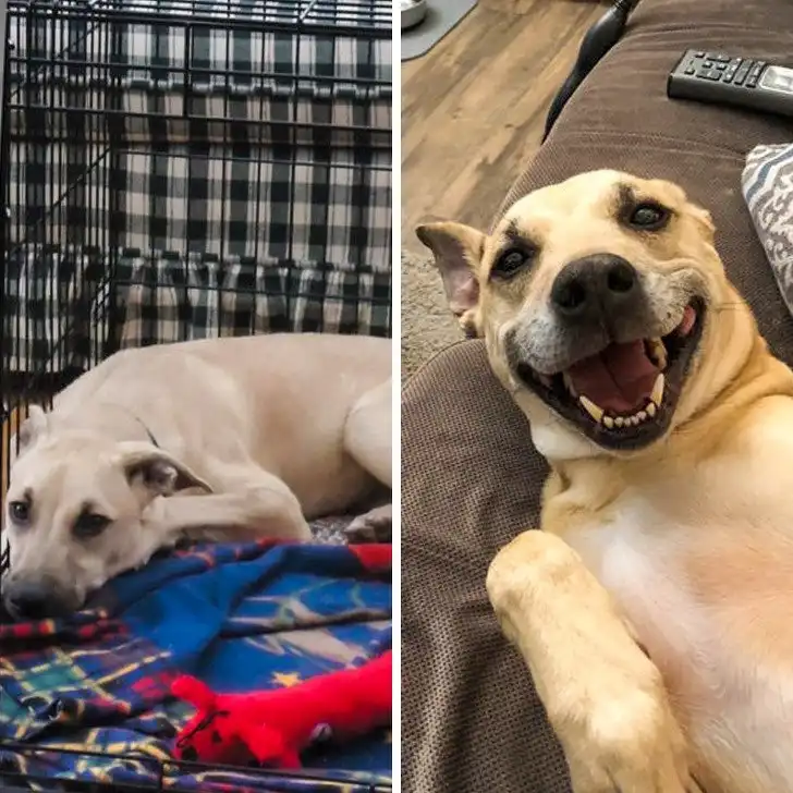 «Я забрал домой Моджо за считаные часы до того, как его собирались усыпить. У него был лишний вес, и он всего боялся, даже камеры. А сейчас он самый счастливый и общительный мальчик»