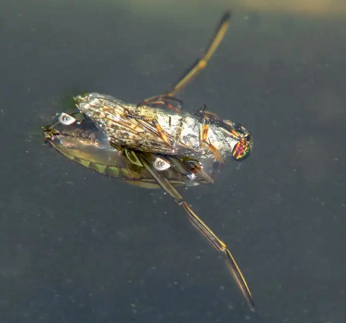 Но на утро в эту саму реку лучше не соваться, ибо хмель сошёл, и матушка-природа уже не кажется такой уютной. В рассветных лучах, снимая похмелье в речке, можно увидеть на поверхности воды что-то пострашнее вчерашних быдланов. Например, водяного клопа!