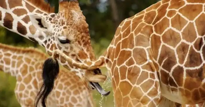 Часто молодые жирафы присоединяются к стадам зебр и антилоп гну, если их пока ещё не приняли в стадо.