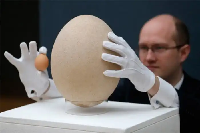 Яйцо Моа по сравнению с обычным куриным яйцом.
