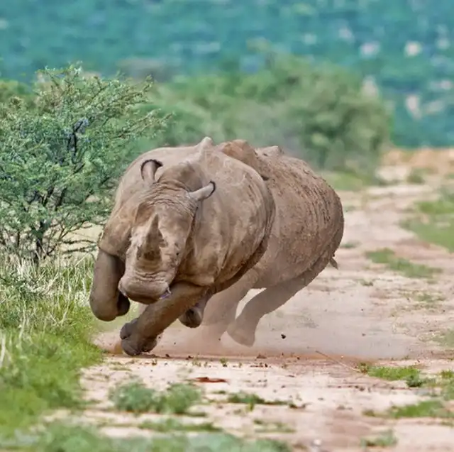 Если вам кажется, что носороги - это медлительное животное, то вам лучше передумать. Эти здоровяки могут развивать скорость до 55 км/ч и ликвидировать любое препятствие. Превратить большой джип в груду из металла - это не проблема для носорога.