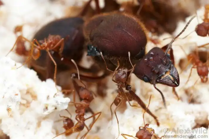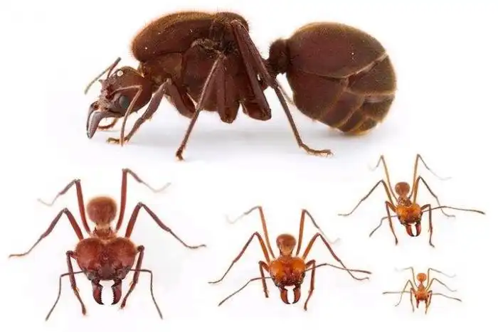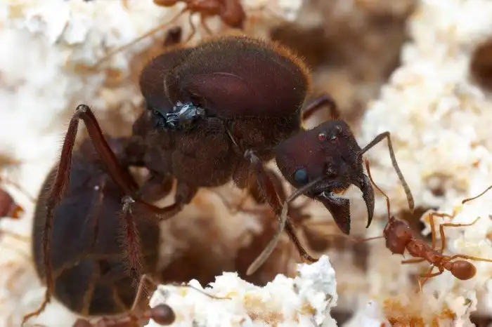 Королева выглядит крайне жуткой по сравнению с обычными муравьями-рабочими.
