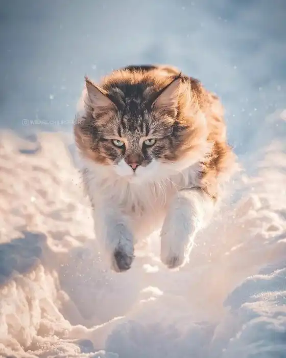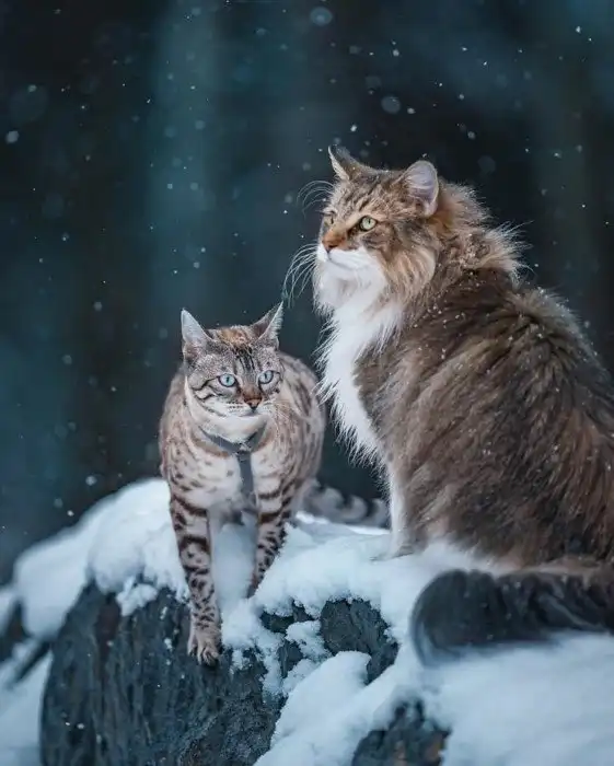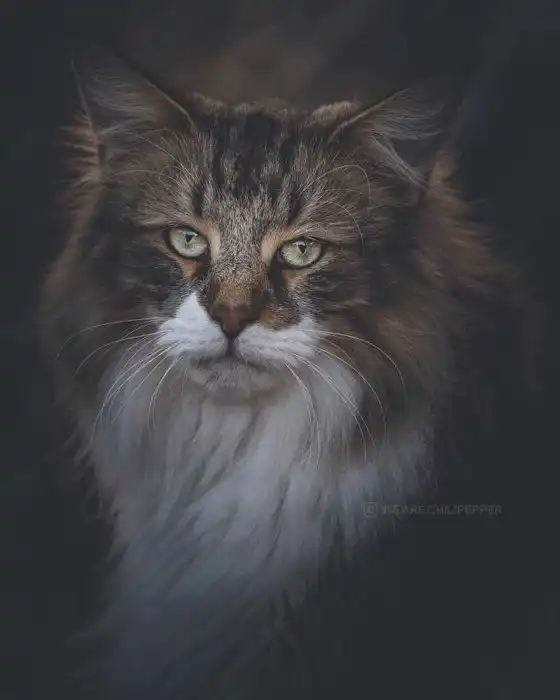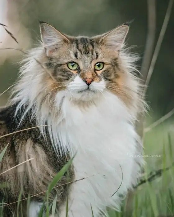 Жительница Норвегии по имени Камилла два года назад завела котенка породы норвежский лесной. Малыш, искавший постоянный дом, был просто неотразим, и Камилла взяла его ни секунды не думая. Котенка назвали Пеппер и завели ему Инстаграм, чтобы было куда выкладывать фотографии. Посмотрите, в какого великолепного котяру он превратился сегодня! Примерно через полгода после появления в доме Пеппера Камилла и ее муж решили найти своему питомцу какую-нибудь компанию. Ею стала крошечная голубоглазая бенгальская кошка. Ей было 6 месяцев и ее назвали Чили.