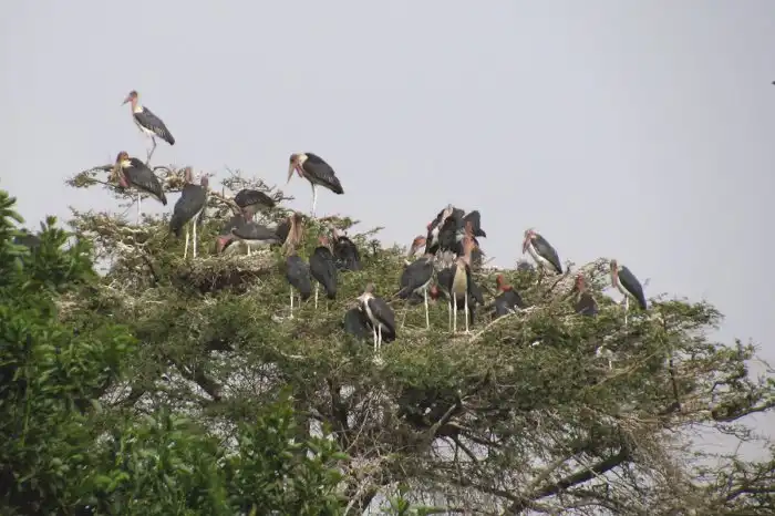 Зачем марабу такой странный отросток на шее учёные до сих пор не знают. Сначала предполагали, что в этот мешок птицы складывают еду про запас. Но сейчас орнитологи склонны думать, что эти мешки используются как подушка, на которую марабу складывает голову.