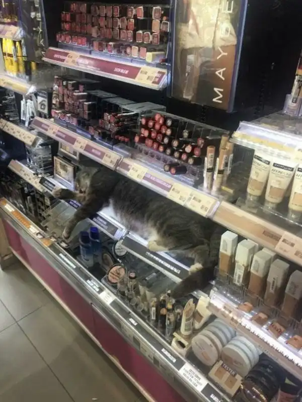 Известно, что кошки являются лежебоками, которые проводят во сне в среднем по 16 часов в день. Так как они заслуженно считаются чемпионами по отлёживанию боков, они больше других знают об этом времяпрепровождении. Наши пушистые друзья были замечены спящими почти везде. Да и позы, которые котейки при этом принимают не могут ни веселить — они спят на голове, вверх ногами, сворачиваются клубками, изгибаются или используют собаку в качестве подушки.