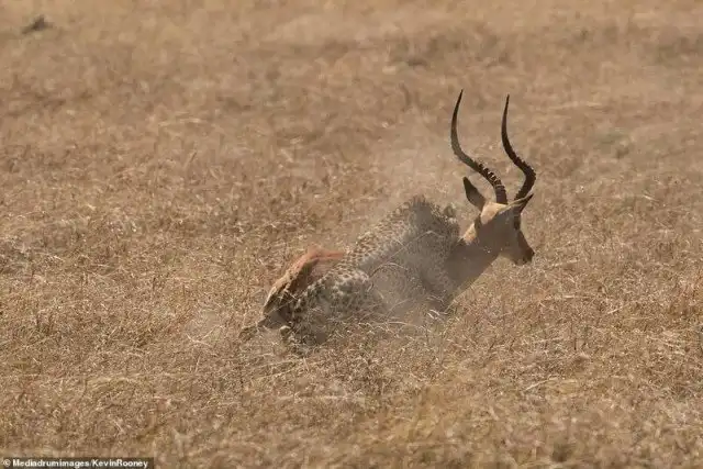 53-летний Кевин Руни, инженер аэрокосмической компании из Глостершира, утверждает, что ему просто повезло поймать эти кадры во время фотосафари. "Мы увидели гепарда и шестым чувством поняли, что сейчас он будет нападать, - рассказывает руни. - Мы расположились так, чтобы животные были в прямой видимости - и тотчас самка бросилась на импалу". По словам Руни, он был уверен, ято они будут наблюдать финал удачной охоты.