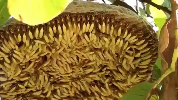 Для того, чтобы личинки внутри не перегревались, осы постоянно жужжат, охлаждая температуру улья крыльями.