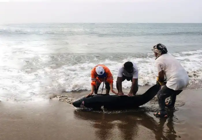 А вообще, умереть кашалоты могут и сами, без помощи хищных рыб. Как и другие киты малютки часто выбрасываются на берег. В этой плачевной ситуации помочь животине может только человек, иначе кашалот погибает. Хоть где-то сапиенсы способны подсобить морским обитателям!