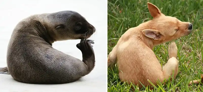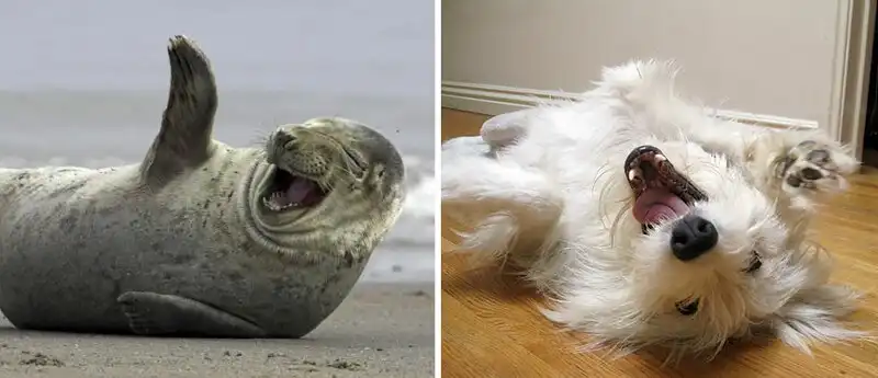 Хотя собаки и кошки живут на суше и прекрасно приручаемы, у собак, оказывается, гораздо больше общего с морскими млекопитающими, чем со своими пушистыми недругами. И собаки, и морские котики относятся к одному и тому же подотряду хищных — псообразным. И несмотря на то, что подсемейство морские котики относится к тюленям, получается, что тюлени скорее морские собачки. Не верите? Взгляните на несколько фото чуть ниже