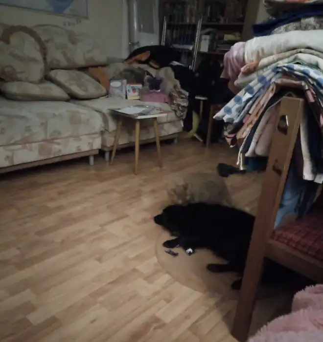 Наш пёс в ужасе от того, что мы занимаемся дома спортом