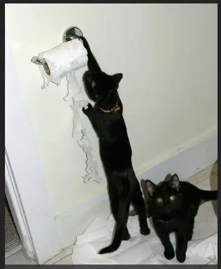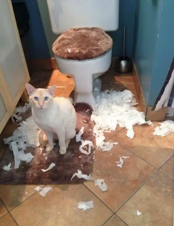 Пестрая фотоподборка, наглядно демонстрирующая необъяснимую страсть наших усато-полосатых питомцев к туалетной бумаге