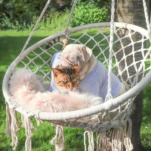 Альбиносоподобная внешность Милкшейка - результат врожденного недостатка пигментации. К счастью, сказалось это только на его окрасе, но не на состоянии здоровья. У собаки нет проблем со зрением, чувствительностью к солнцу или высокого риска заболеть раком кожи.