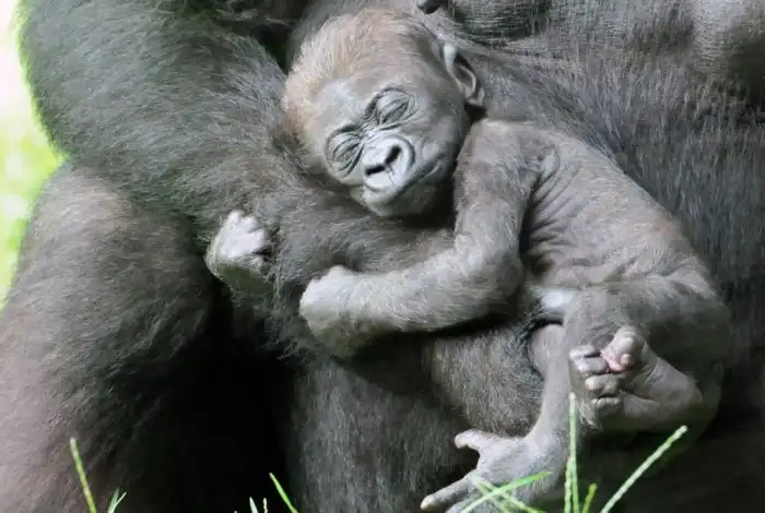 Как и наши дети, до 3 лет малыши горилл полностью зависят от матери.