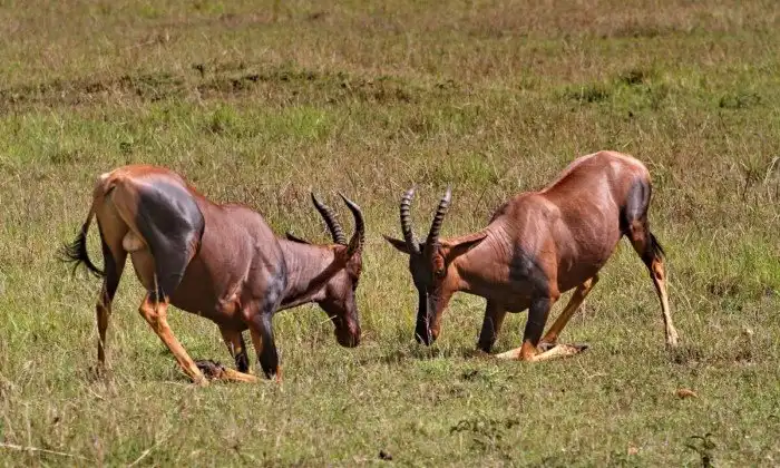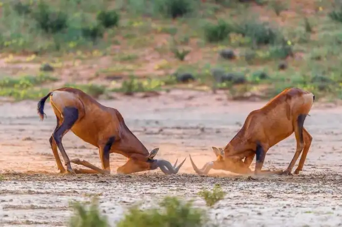 Вот только вместо стадиона топи подошла бы скорее боксерская арена. Один неровный взгляд, и одуревший самец начинает махач. Драками антилопы постоянно подтверждают право на свою территорию, гарем из 5-8 самок и титул главаря. Если всего вышеперечисленного у самца нет, он будет драться со всеми встречными поперечными, чтобы это заполучить.
