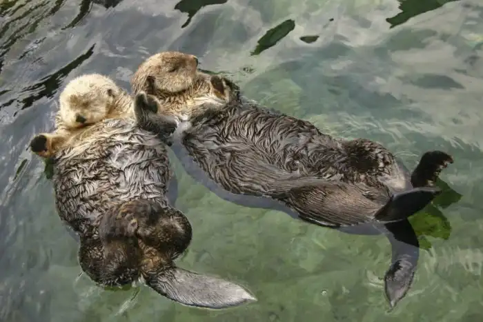 Для того, чтобы во время сна не уплыть слишком далеко в море, каланы держат друг друга за лапку. Также они могут цепляться к камням и водорослям, если поблизости нет сородичей. Мило то как!