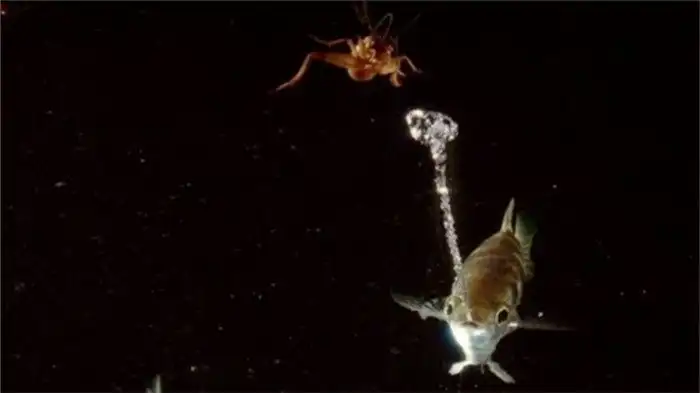Правильно, он убивает их смачным харчком! Будучи 2,5 сантиметровыми дитятками, брызгун уже умеет пускать струю воды, которая сбивает летающих над водой насекомых. Длина такого плевка может достигать 2 метров! Более того, сила такого удара поистине смертоносна. Струя ударяет насекомое с такой мощью, что оно валится в воду замертво. Брызгуну только и остаётся избавить букаху от страданий, сожрав её.
