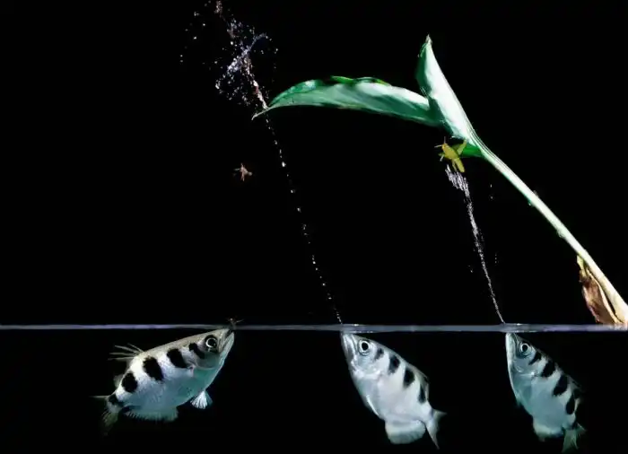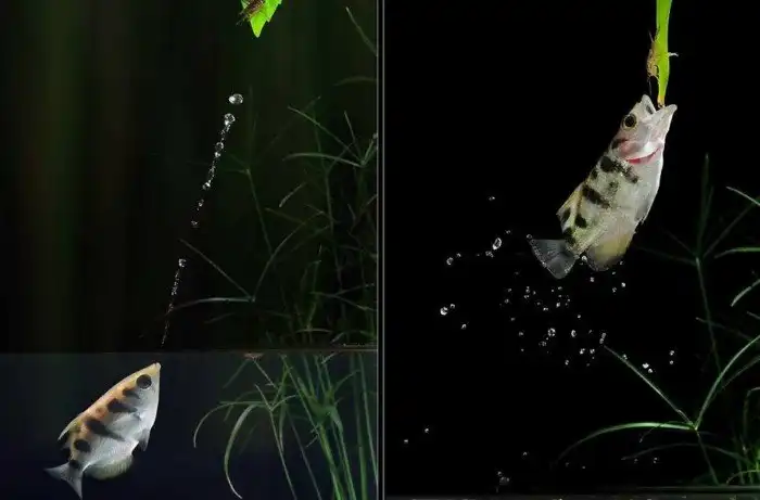 Но помимо того, что рыба-брызгун офигительный гопник — она еще и офигительный физик! Интуитивно рыба учитывает гравитацию, которая будет действовать на выпущенную струю, преломление света, чтобы скорректировать удар и количество воды, для того, чтобы харчок точно стал смертоносным.