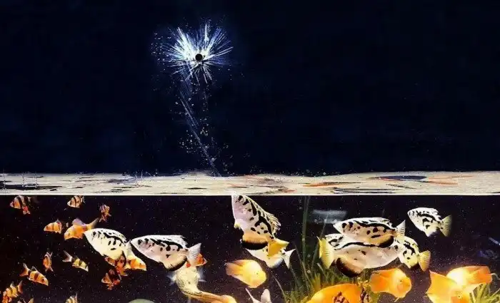Во-первых, бассейн объёмом в 150-200 литров, во-вторых, большое количество растений: как над аквариумом, так и в нём, эмитирующие заросли. В-третьих, все лампочки над аквариумом придётся накрыть стеклом, иначе они очень быстро выйдут из строя.