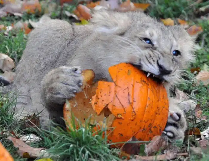 Почему-то в зоопарках особую любовь хищники испытывают к тыквам...