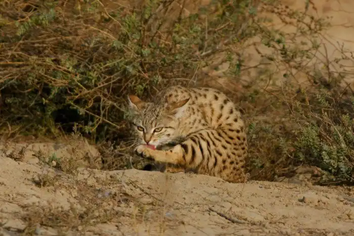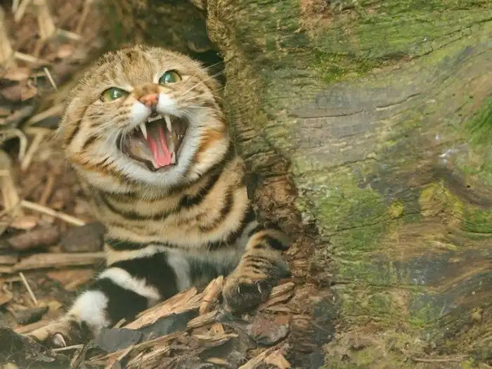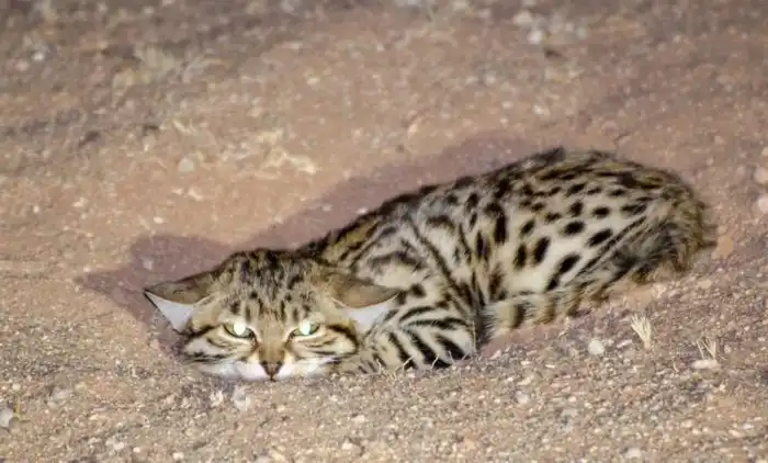 Часто этих кошек можно встретить в пустых дуплах, где они также прячутся от африканского зная.