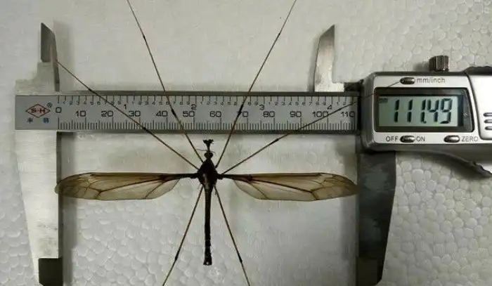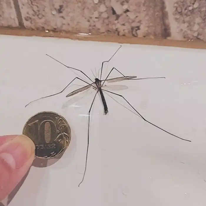 Кстати, нашему сегодняшнему гостю принадлежит гордый статус самого большого комара. Размах крыльев насекомого-гиганта составляет 11 см!