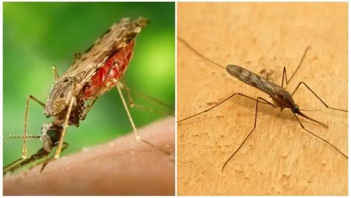 1. Малярийный комар, 2. Комар-долгоножка. Как видите, настоящий малярийный комар внешне мало отличается от обычного.