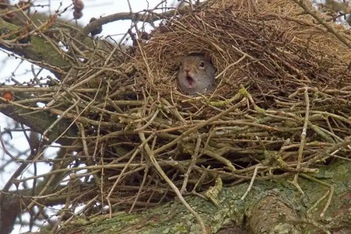 Свои апартаменты белки устраивают в дуплах старых деревьев. В хвойных лесах животинки вьют самые настоящие шарообразные гнёзда — гайна. Если дупло найти не удалось, а строить что-то самому — в лом, рыжухи вероломно занимают гнёзда птиц или селятся в скворечниках. Одна белка занимает сразу несколько гнёзд, периодически меняя место прописки. Так грызуны спасаются от паразитов, да и хищники не узнают их точного адреса.