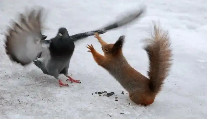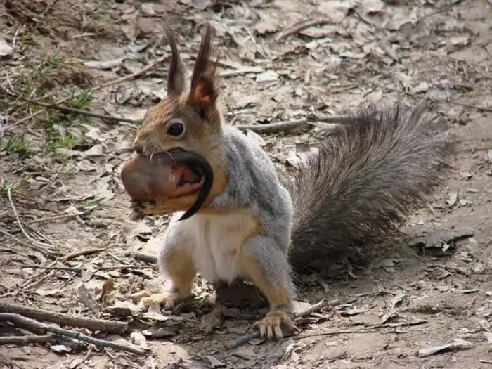 Во-третьих, под удар рыжей бестии попадают те, кто являются её прямыми соперниками за пищевые ресурсы. То есть белка в лучших традициях мафии кровавым способом избавляется от конкурентов! Ну, а после расправы с неприятелем, не пропадать же добру, богатому белками и прочими полезными плюшками.