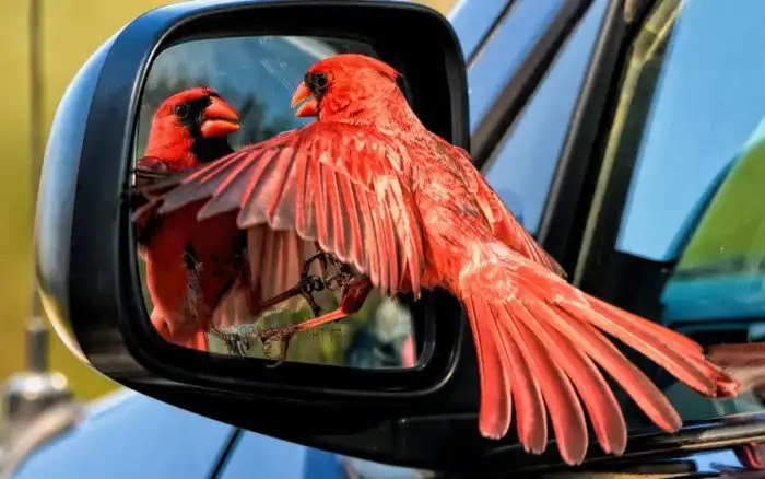 И живут птички мирными семейными парами, пока не приходит весна. В период гнездования парни слетают с катушек. Эти ребята не терпят соседства. Ни с кем. Разъяренный самец кидается на всё и вся: сородичей, других птиц, людей. Порой они настолько безумят от ярости, что нападают на собственные отражения в зеркалах, стёклах, блестящих бамперах автомобилей.