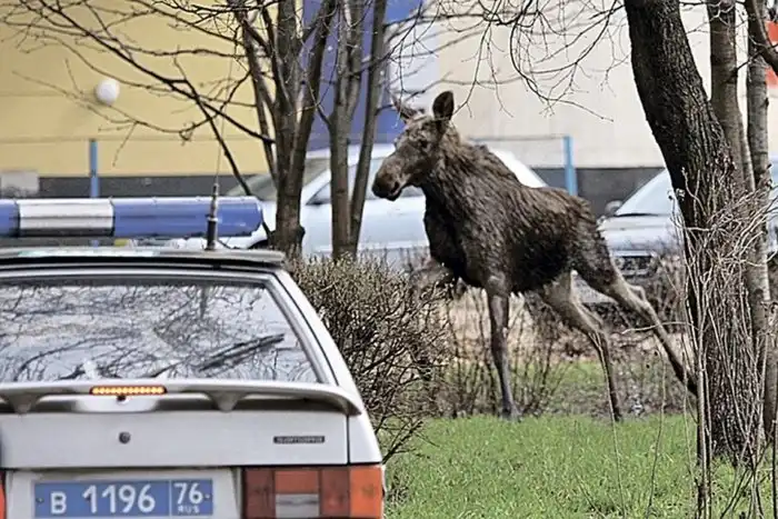 Основная причина, из-за которой рогатый может появиться в городе, — корм. Совершая кочёвки в поисках травки позеленее, лось забредёт и в огород, и в город. Особенно актуальна эта информация для тебя, гражданин Великой и Могучей. Животины регулярно наведываются в населённые пункты! Так в Вологодской области группа из 3 лосей целые сутки лихо рассекала по городу, не боясь ни людей, ни автомобилей. И вправду, чего бояться животине ростом под два метра, вооружённой острыми копытами и рогами? Это люди должны перед ней трепетать!