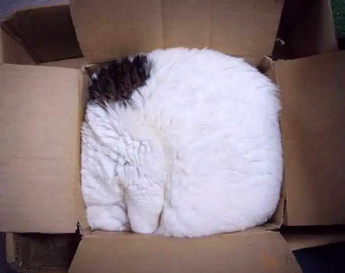 Странные позы — прямой показатель состояния котейки. В одной позиции животинка экономит энергию, свернувшись в комочек; в другой — демонстрирует эмоциональную привязанность к хозяину, раскрыв пузико; в третьей — регулирует теплообмен, пакуясь в коробки, пакеты, горшки и другие замкнутые пространства.