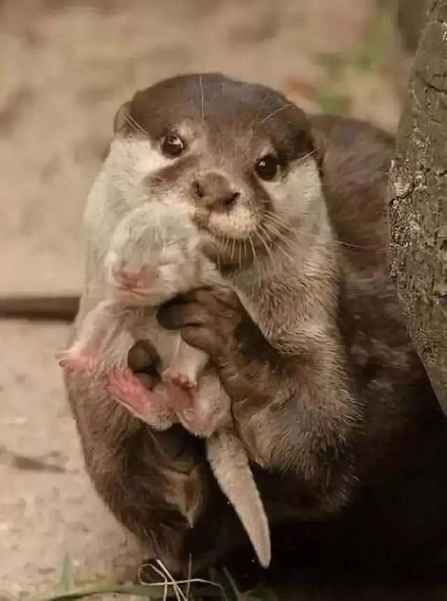 Выдры показывают своих детёнышей, когда сталкиваются с опасностью, чтобы разжалобить нападающего