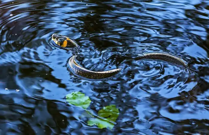Ужи очень любят селиться у воды. Здесь больше всего их основной добычи — лягушек.