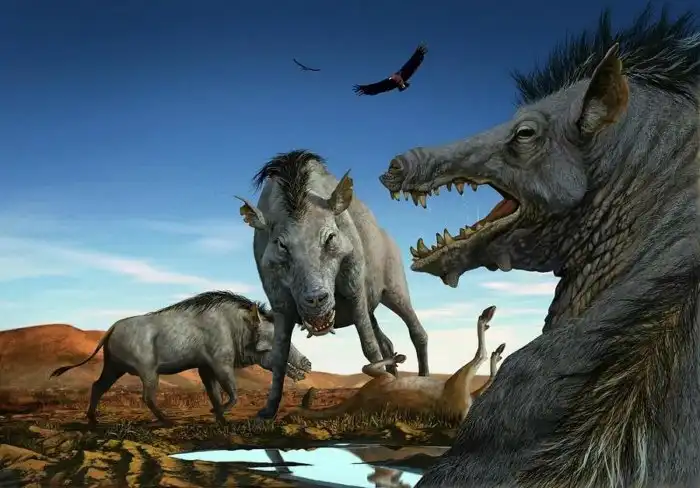 Прежде чем стать главными мясоедами нашей планеты, современным хищникам пришлось справиться с целой толпой претендентов на вакантные места. Были среди них и ящерицы, и огромные птички, и даже сухопутные крокодилы! Но ничуть не менее серьёзными конкурентами стали… Свиньи. А точнее один конкретный свин — деодон.