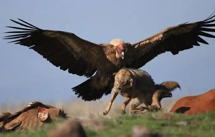 Но если с собратьями-птицами у кондора полное взаимопонимание и творческий симбиоз (они находят падаль, кондор её потрошит), то с пумами и волками птиц поступает не больно благородно. Их добычу, недоеденную и припрятанную на потом, он нагло отжимает, вынуждая хищников охотиться в два раза больше.