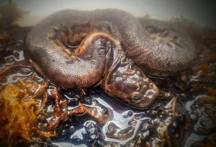 А ещё змейка научилась своими дряблыми телесами дышать. Кожа рептилии пронизана кровеносными сосудами, где сохраняются эритроциты, наполненные кислородом. Безвылазно кваситься под водой животина может добрые полчаса, лишь время от времени являя свою моську на свет, чтобы глотнуть свежего воздуха.