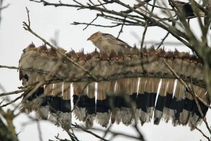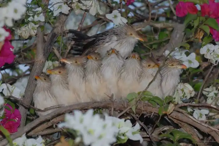 В отличие от отечественной кукухи, которая оставляет своих детишек сиротками с самого детства, наша героиня не просто ухаживает за своими птенчиками, она выстраивает вокруг этого ритуала всю свою жизнь. Отличаясь высокой плодовитостью (5-7 яиц за кладку), родители рискуют не прокормить такую большую ораву в одиночку. Но гуира нашла решение!