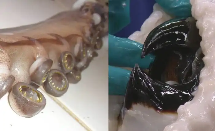 Вот они — главные орудия пыток кальмара (клюв оторвали не у попугая, у всех кальмаров и осьминогов он такой)