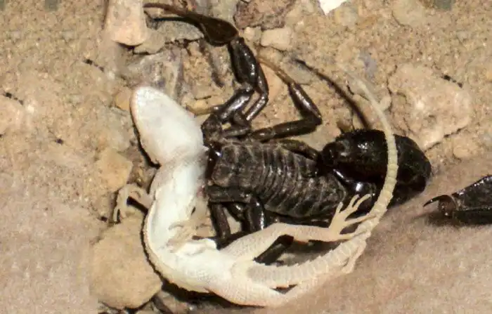 Зато если скорпион захочет поесть, отказывать он себе не станет. Его добычей становятся крупные насекомые, рептилии и даже млекопитающие.