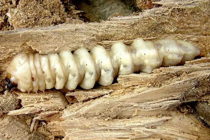 А связано это с пищевыми предпочтениями их червеобразных личинок, которых хлебом не корми — дай деревяшку заточить. Жизнь у личинки стригуна — то ещё удовольствие. Вся их диета состоит из твердокаменной древесины, которую не то что пережевать — откусить сложно! Титановыми челюстями они скоблят целлюлозные волокна, отгрызая щепочку за щепочкой.