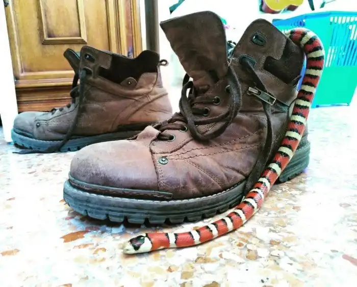 Так что королевская змейка бессовестно пользуется своим положением, пугая до чёртиков всех тех, кому не повезло оказаться поблизости. И это при том, что рептилия абсолютно неядовита! Её оружие — всеядность, отбитость и небольшая долька каннибализма на сдачу. В сумерках или под покровом ночи животина вершит свои злодеяния. Шнурок жрёт птиц, грызунов, яйца, ящериц — всё, что только может влезть в полосатый чулок, змея обязательно проглотит.