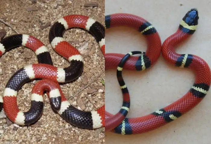 Явление, когда одно животное маскируется под нечто другое, называется мимикрия. Чтобы не путать аспида с королевской змеёй, в Америке есть поговорка: "Красный и чёрный — друг непритворный, жёлтый и красный — смертельно опасный". А теперь вопрос: где королевская змея, а где аспид? Пишите в комментариях!