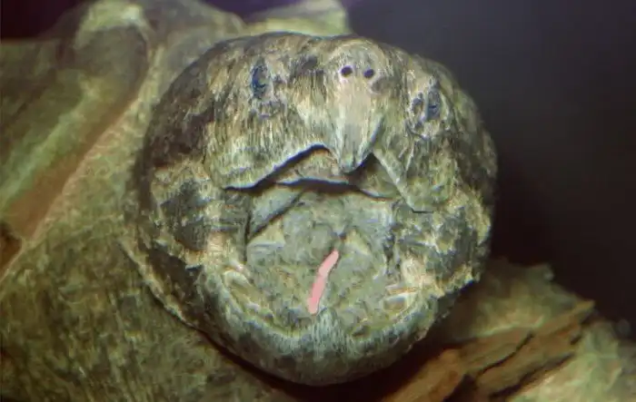 Грифовая черепаха достойна аплодисментов за сообразительность и лень. Ведь ей, чтобы охотиться, не нужно даже двигаться с места. Она неподвижно лежит на дне с открытым ртом, немного зарывшись в ил. Кончик ее языка имеет ярко-розовый цвет и по форме напоминает червяка. Черепаха просто шевелит языком, «червяк» извивается, а рыбы подплывают к «червяку» в надежде полакомиться, но тут же попадают в ловушку черепашьих челюстей.