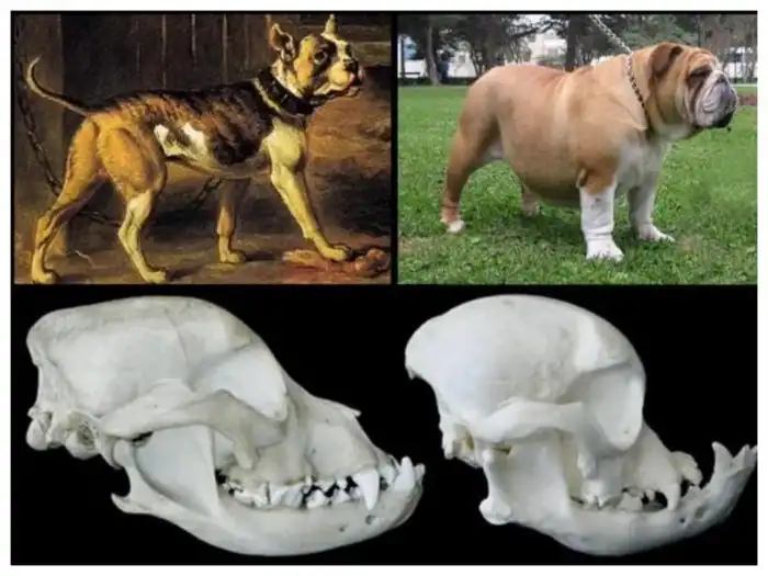 Как изменился череп бульдога. Верхняя челюсть уменьшилась в два раза!