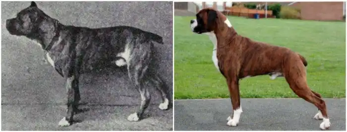 Разница породы боксёр в 100 лет. Приглядитесь к морде и поразитесь, как сильно она сократилась!