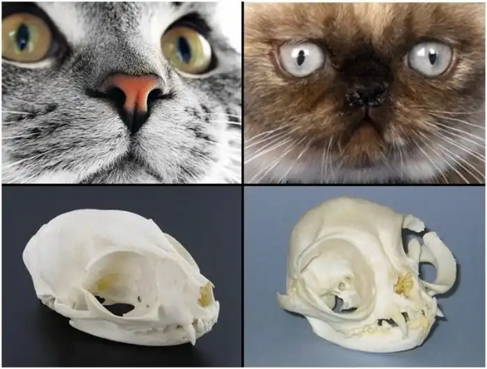 Что такое брахицефалия? Возьмите обычного кота и уроните его мордой вниз с пятого этажа. Полученная черепушка станет значительно короче и куда более плоской – мы получим самый настоящий брахицефальный череп. Такая деформация роднит перса с мопсами и бульдогами, ещё одними жертвами человеческой селекции. С точки зрения самого животного это очень плохо и приводит к куче болячек. Проблемы с носом, глазами и зубами – лишь наиболее частые из них.