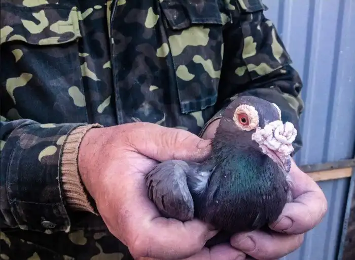 Это всё, конечно, интересно, но что у него с лицом-то? Это рак башки? Что ж, скорее, рак мозга, причём не птицы, а человека. Брухля на морде — результат волшебников-селекционеров. Странные выросты на самом деле — шматки кожи на веках и восковице, коими люди наградили голубя. Зачем? А фиг его знает! Ведь разводили пернатого отнюдь не для красоты!